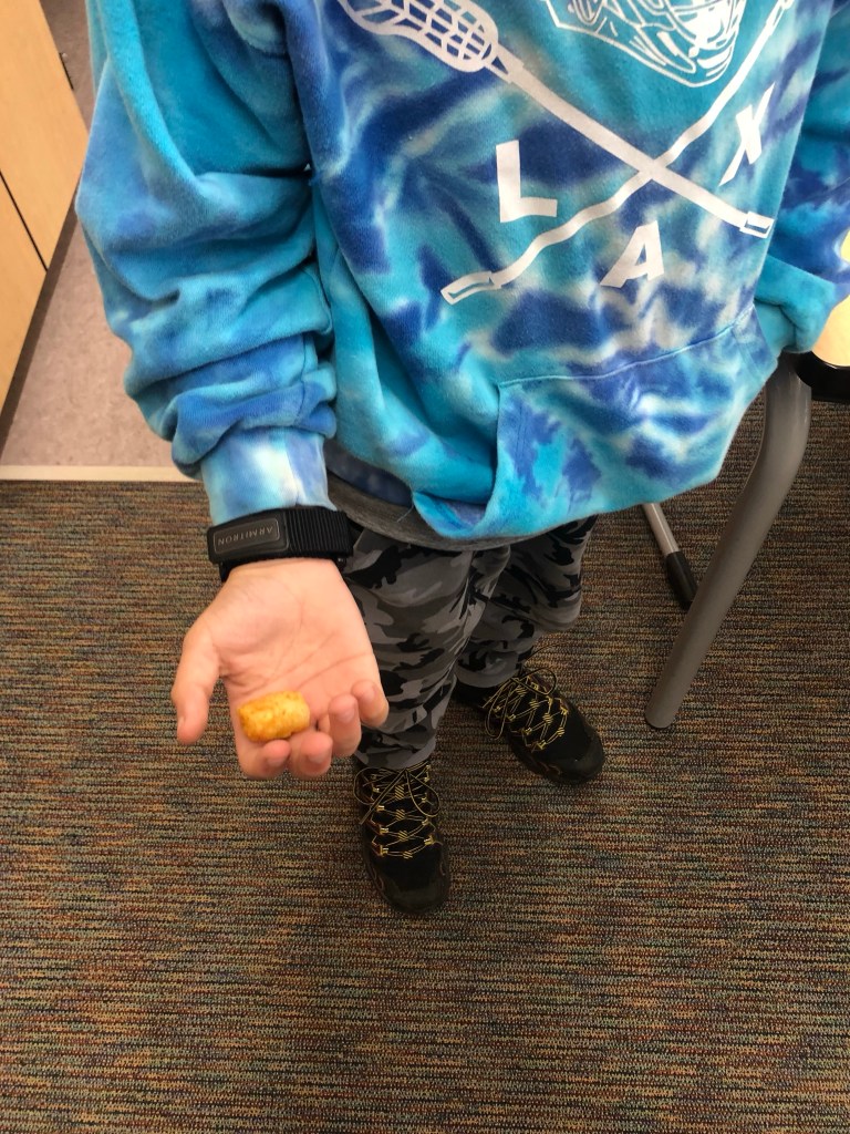 One of my student came into my classroom today and the first thing he did was grab a tater tot out of his pocket and said “do you want a tater tot?”